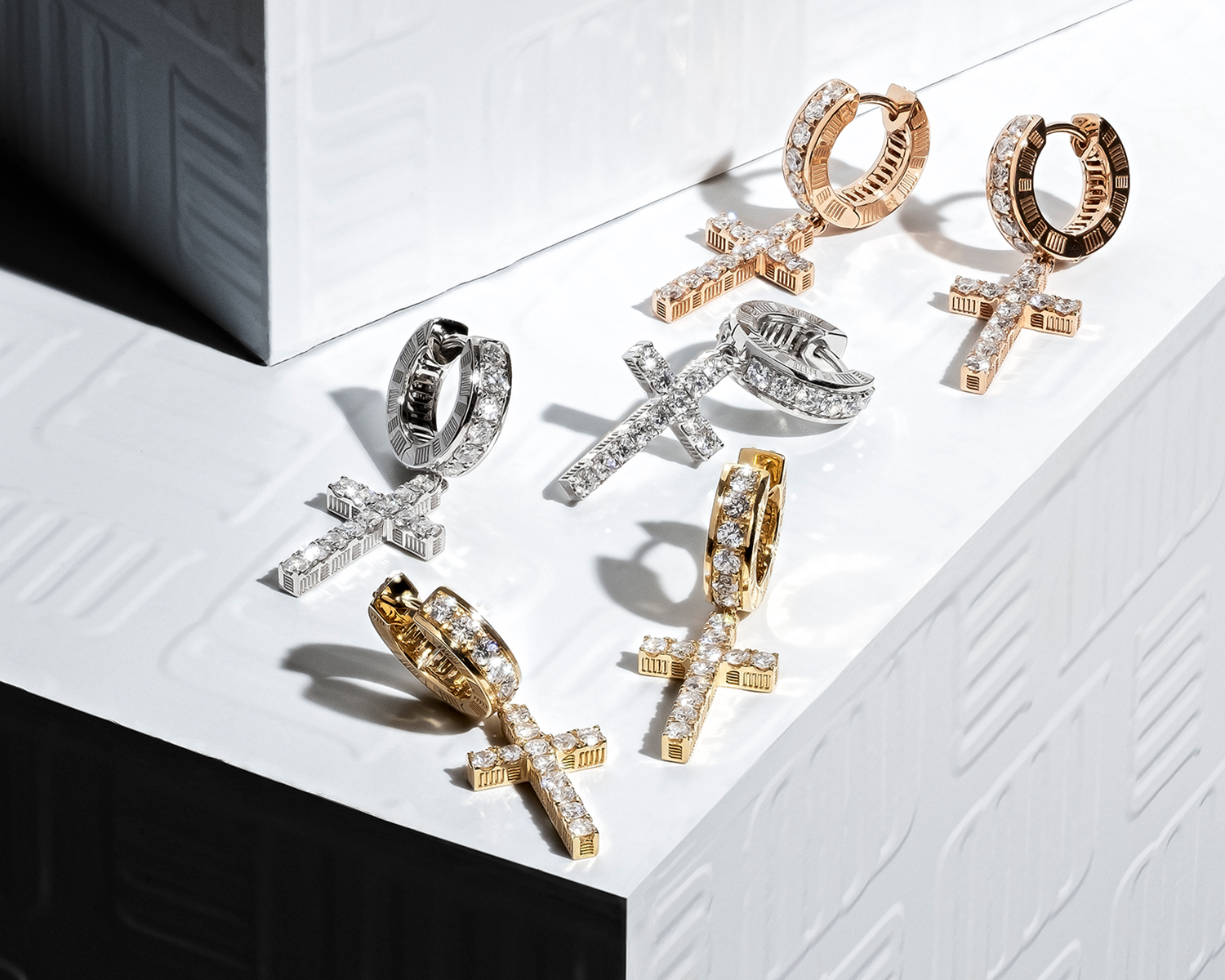Discover the MJ Jones collection of earrings, where sophisticated craftsmanship meets contemporary elegance. Our luxury earrings are designed to offer both timeless beauty and modern style, making them the perfect accessory for any occasion. The DNA collection features personalised earrings that can be engraved with initials or bespoke colours, allowing you to create a piece that's truly unique. For those who prefer a bold, rebellious style, the Spiked collection offers daring designs with precious metal spikes and pavé-set diamonds, perfect for adding an edge to your look. For refined luxury, explore our Jewel earrings. These pieces feature stunning gemstones set in sleek metals, adding a touch of glamour to any ensemble.