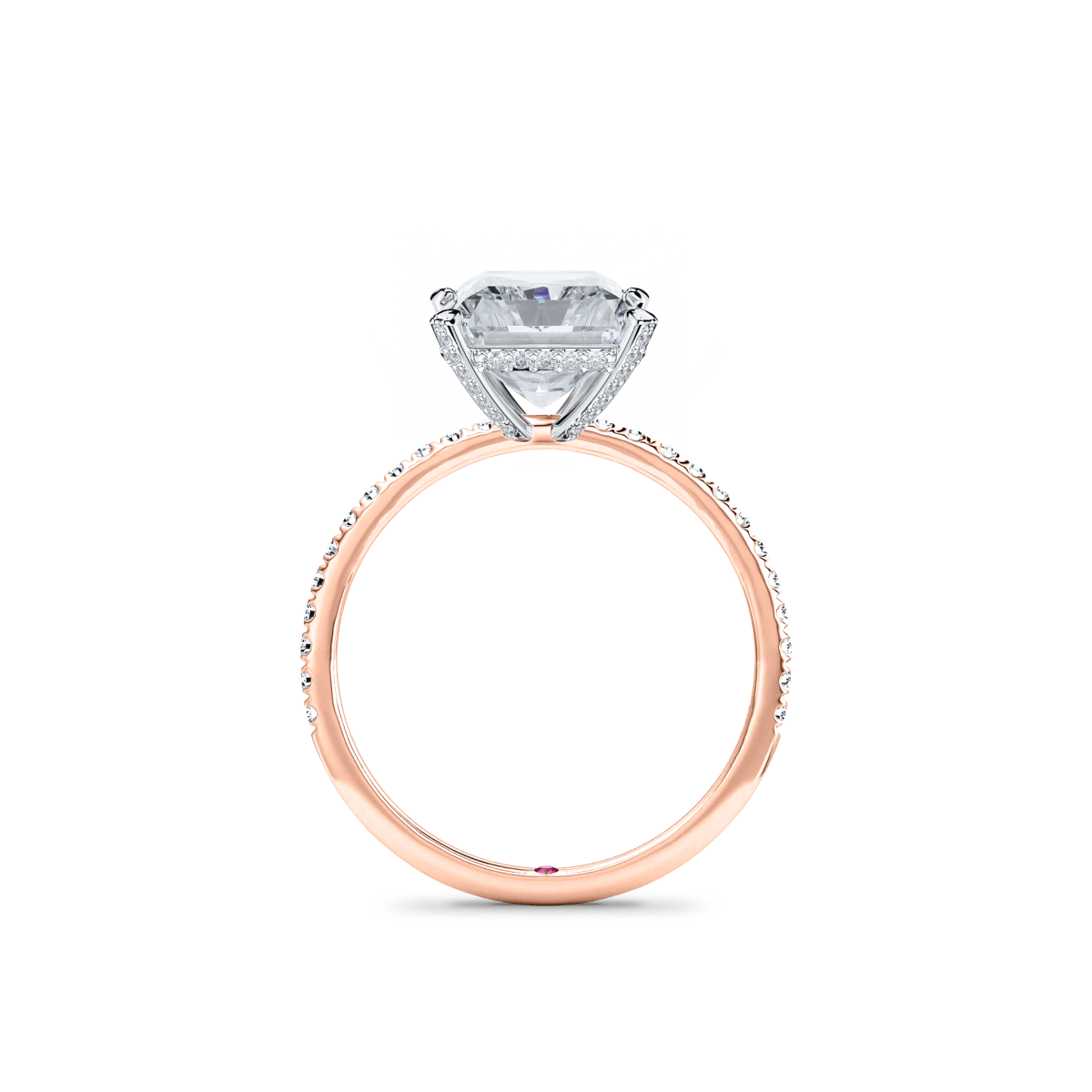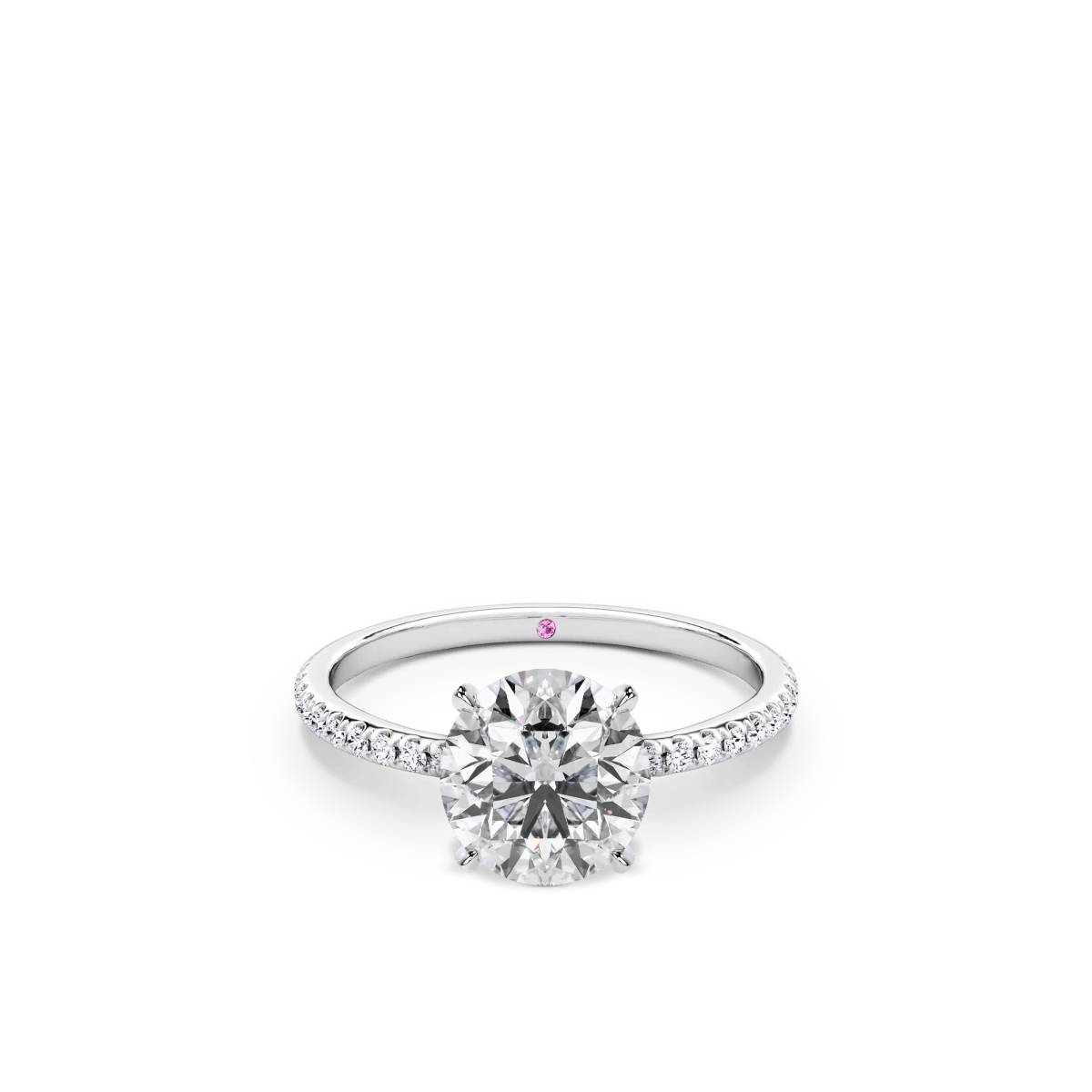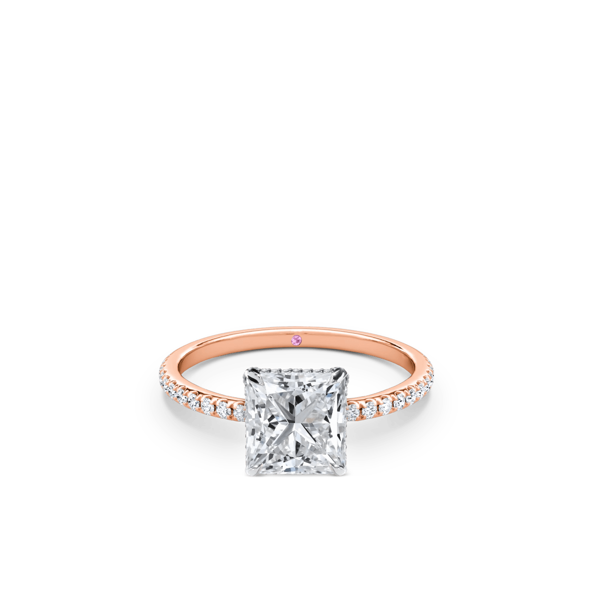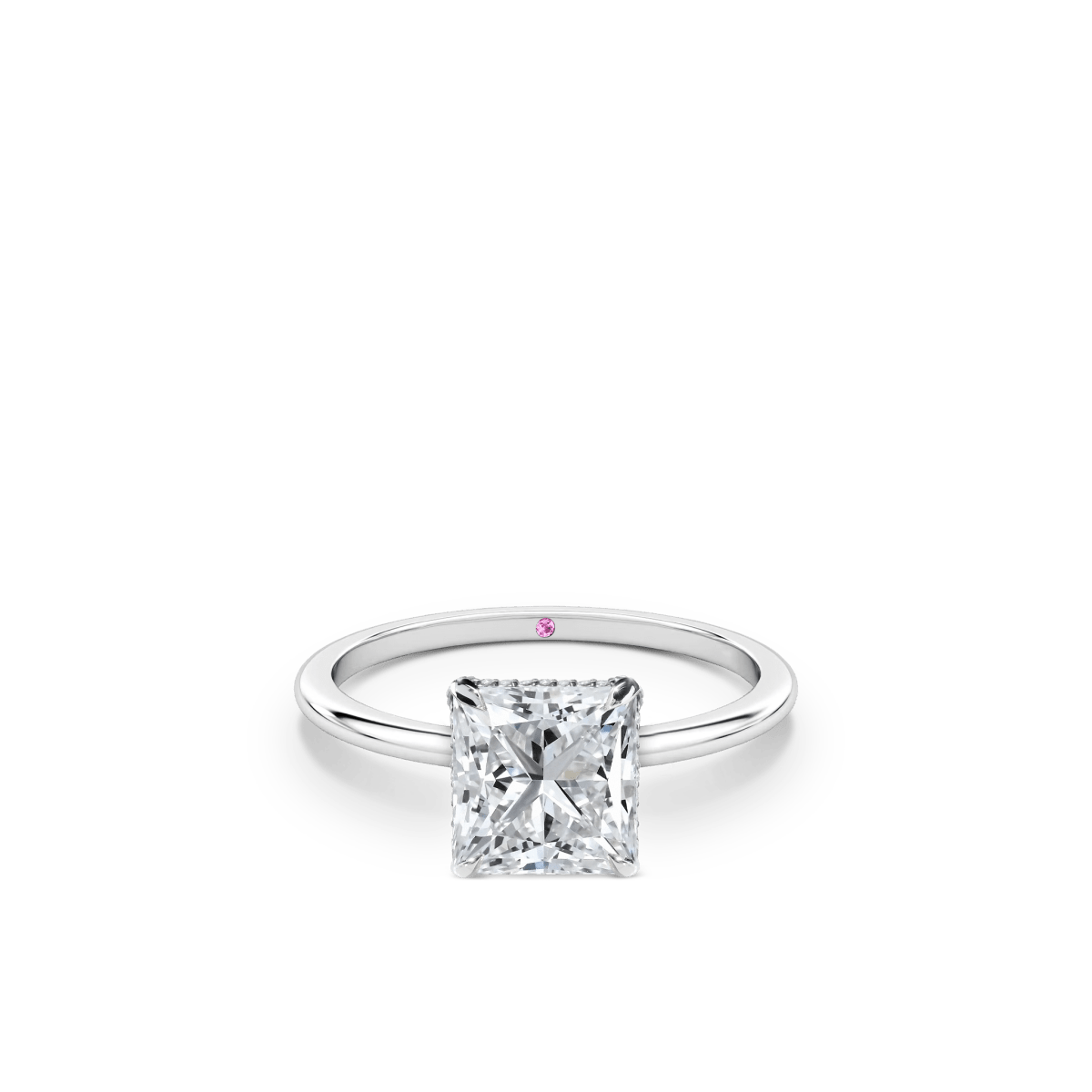 Like a little secret, each of our wedding and engagement rings holds a rare pink diamond or birthstone discreetly set within—a beautiful, personal touch that makes your ring truly one of a kind.