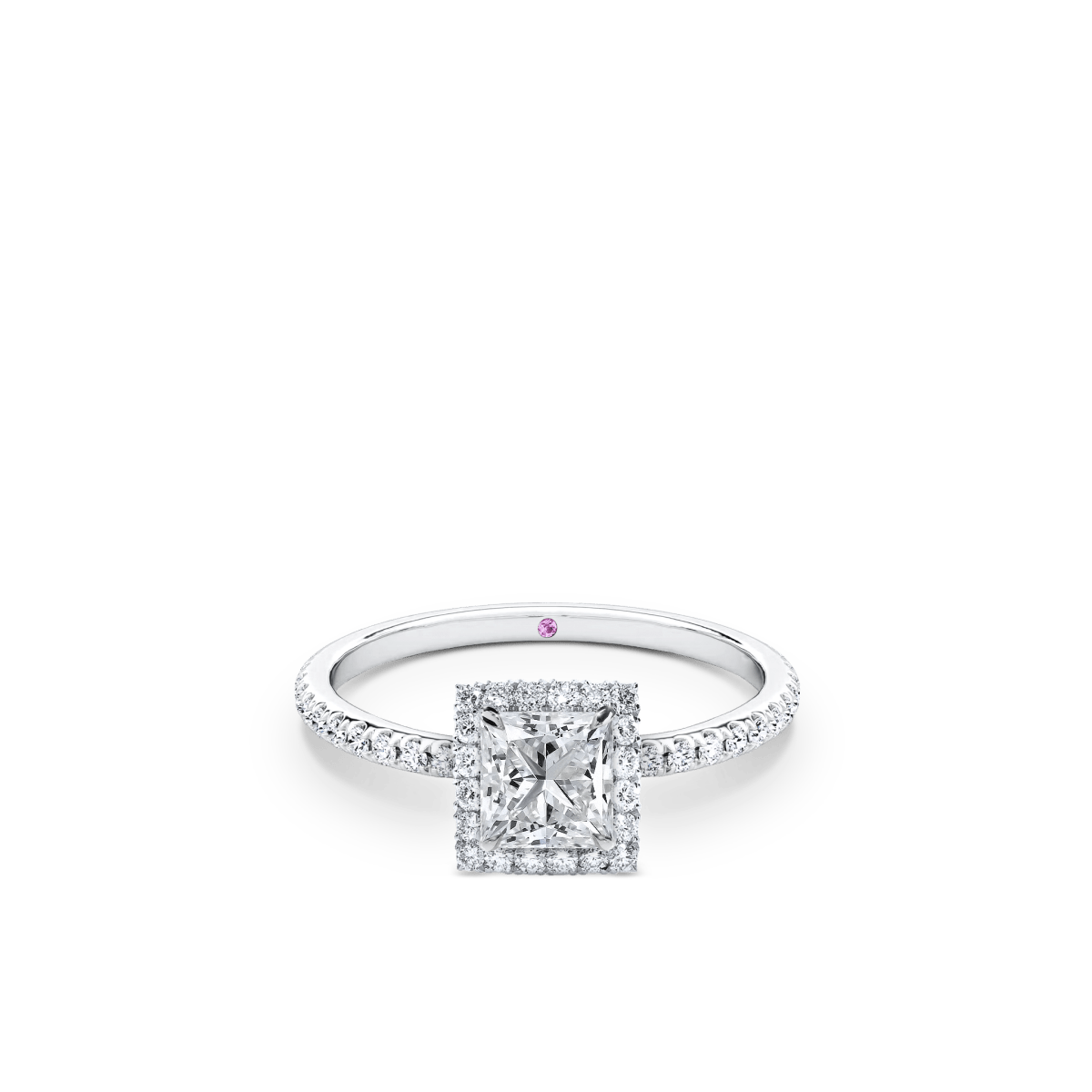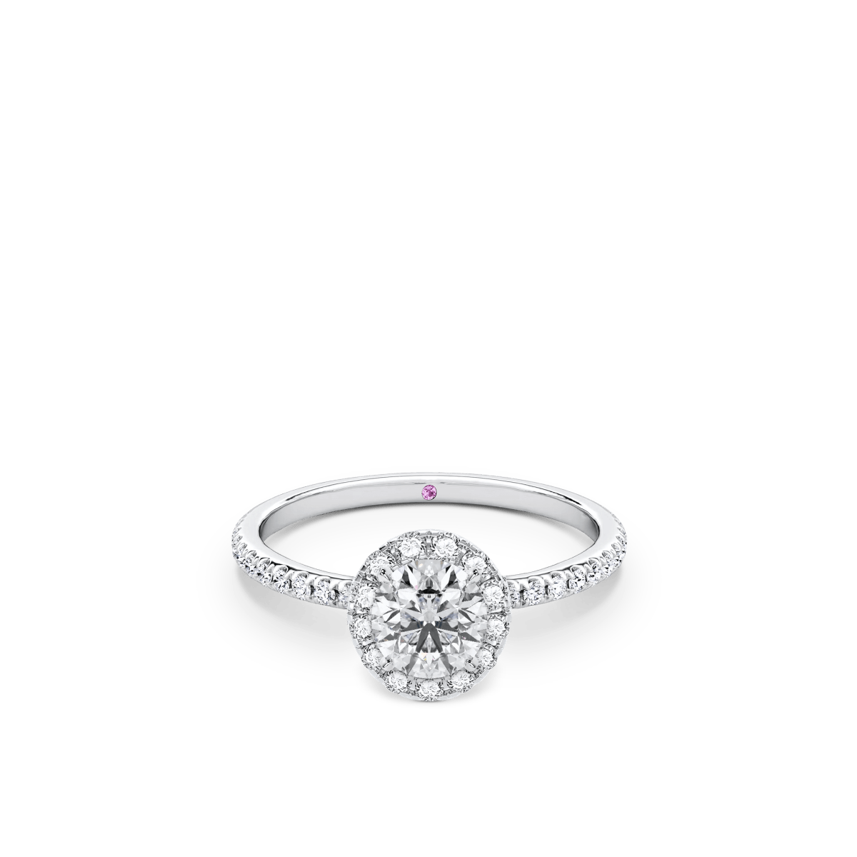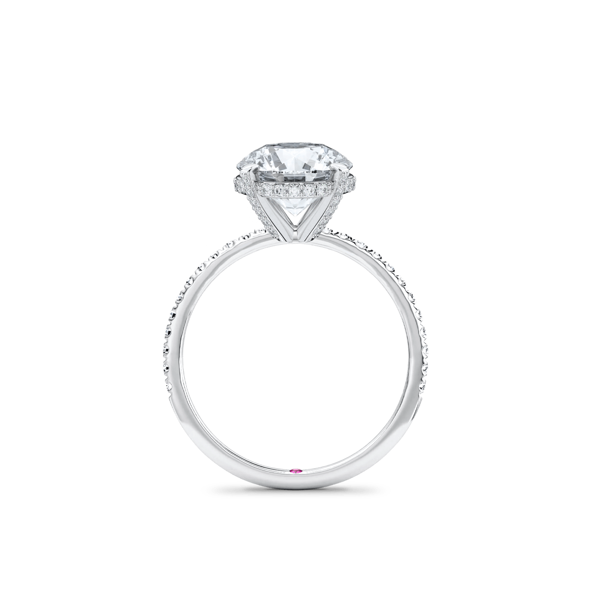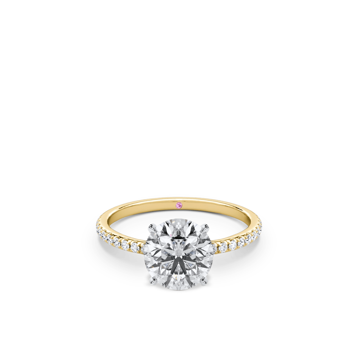 Like a little secret, each of our wedding and engagement rings holds a rare pink diamond or birthstone discreetly set within—a beautiful, personal touch that makes your ring truly one of a kind.